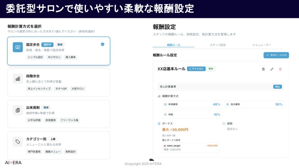 業務委託サロンごとに柔軟に報酬設定が出来るとのこと